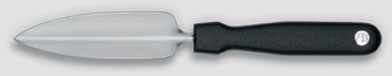 A logóval ellátott fekete speciális műanyag markolat kényelmes érzést biztosít, szegecsmentesen van összeszerelve, mosogatógépben mosható, és ezért rendkívül higiénikus.